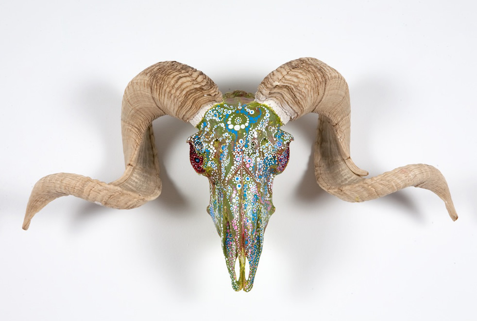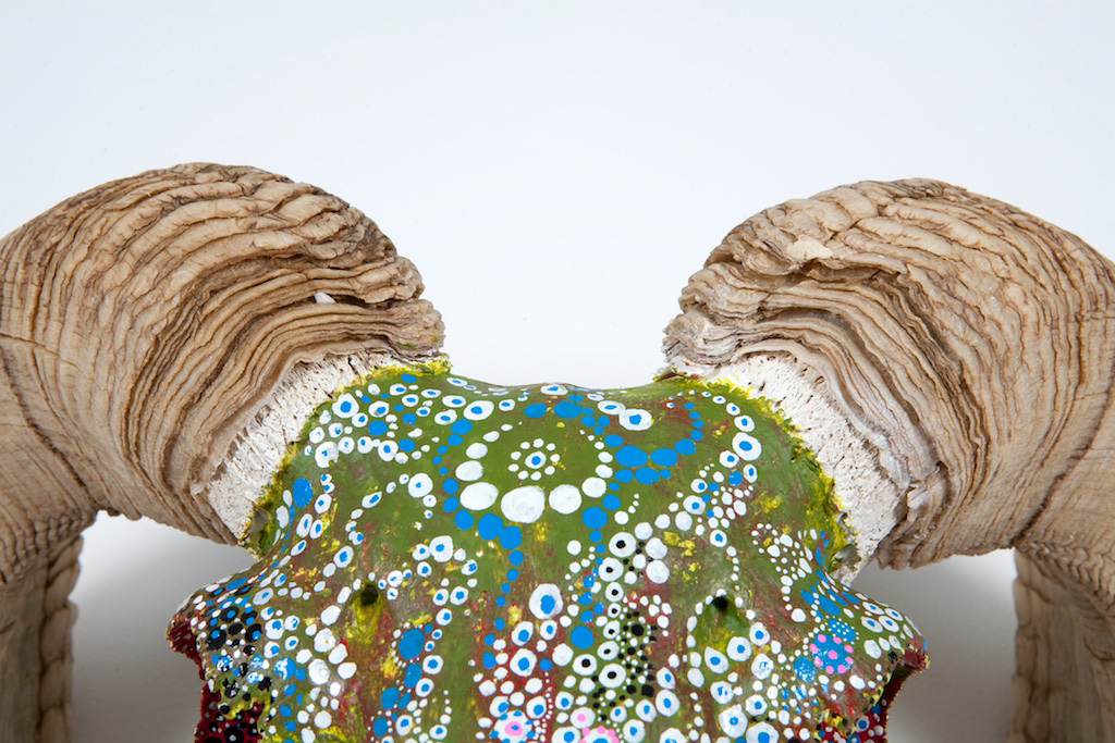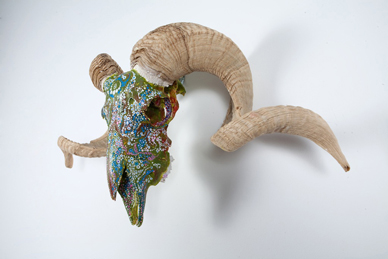 SKULL SERIES “RAM SKULLS” - Acrylic and Oil on bone - 30”x18” - 2009