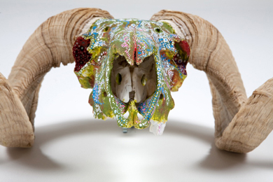 SKULL SERIES “RAM SKULLS” - Acrylic and Oil on bone - 30”x18” - 2009